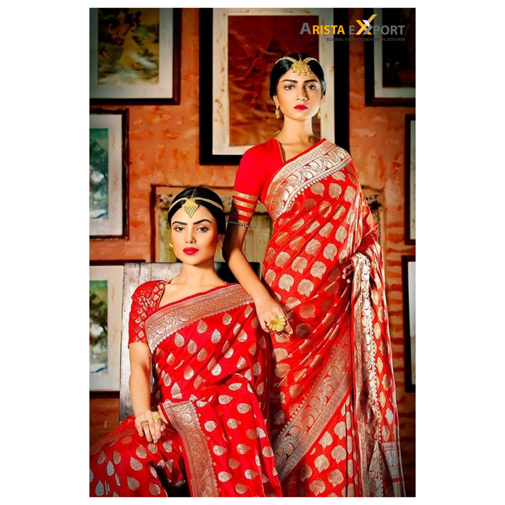Beautiful designing Banarasi saree with high grade silk fabrics available at aristaexport.com. Beautiful banarasi saree is the most wanted product of every classy woman.